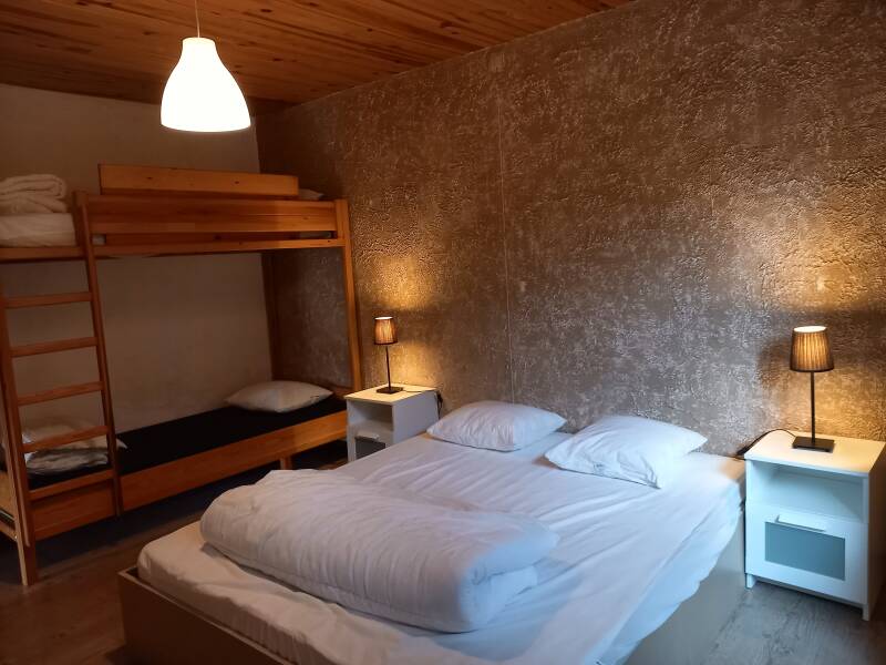 + vierpersoonskamer met stapelbed en dubbel bed